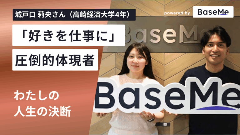 株式会社ベースミーCEO・勝見による、ゲストの人生と価値観に深く迫るインタビュー企画「Kimmy’s Interview」。今回登場するのは、高崎経済大学経済学部国際学科4年の城戸口莉央さんだ。「趣味はNotionと奈良」と語る彼女は、2年生の2月から4年生の6月まで、実に一年以上にわたる長い就職活動を経験してきた。 提出したESは約50社に及んだ。数をこなすほど一社一社への向き合いが薄れ、迷いの […]